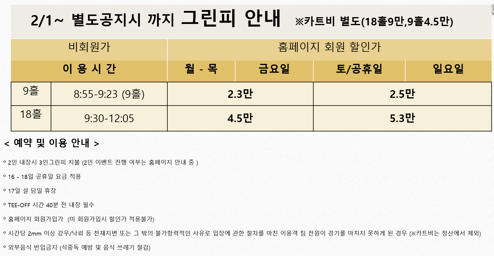 1월~ 별도공지시 까지 그린피 안내